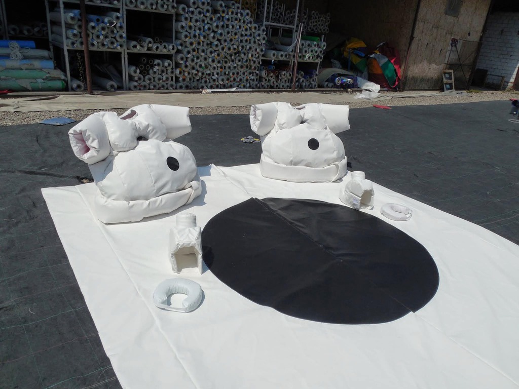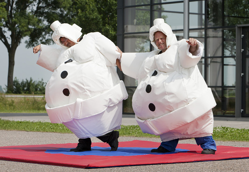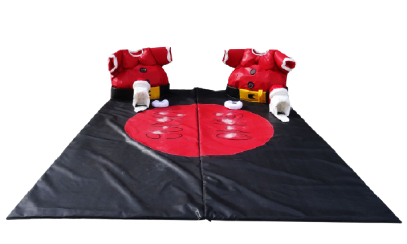 Le célèbre jeu de sumo avec tapis. Les costumes sont en forme de bonhomme de neige
