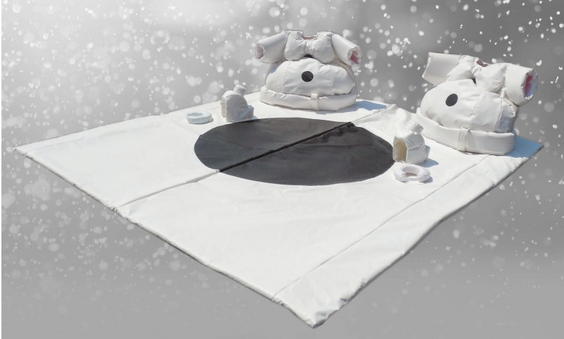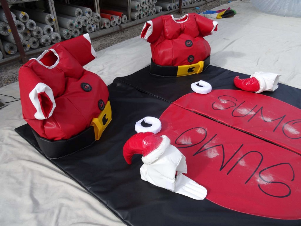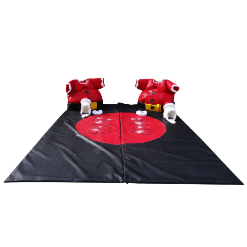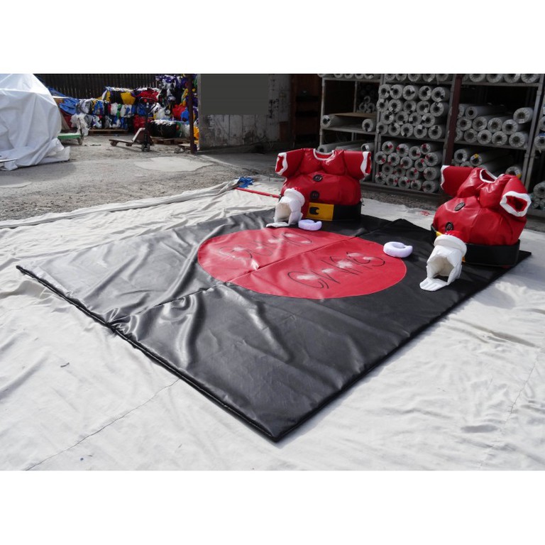 Le célèbre jeu de sumo avec tapis. Les costumes sont en forme de père Noël