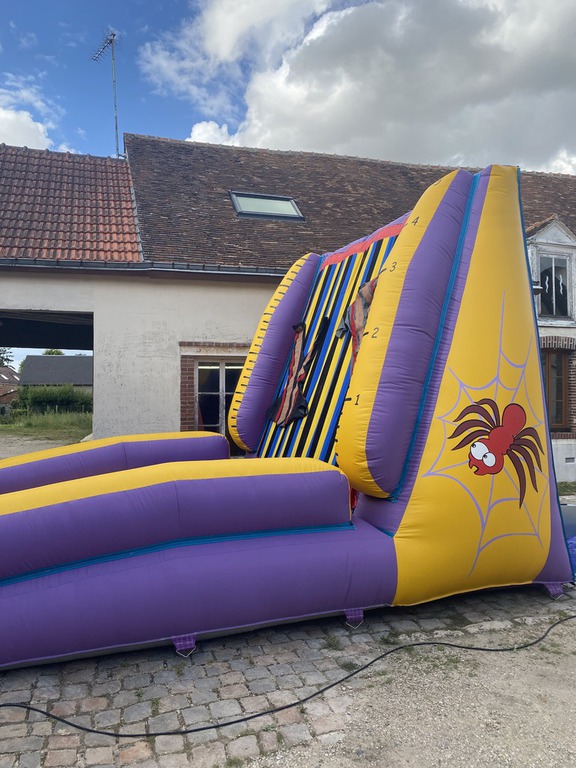 Ce jeu gonflable appelé aussi "Attrappe mouches" consiste à enfiler une tenue totalement velcro et de se coller au mur