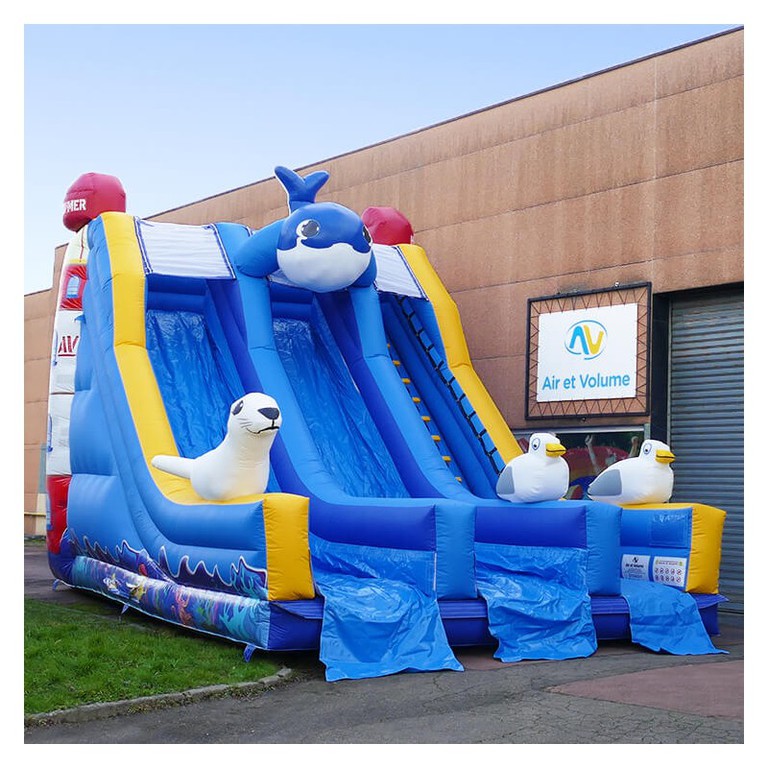 Un toboggan gonflable sur le thème de la mer pour une glisse encore plus rapide et rafraichissante